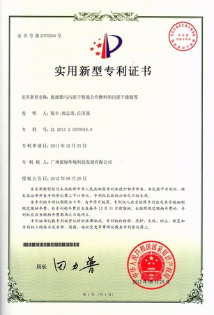 废油脂与污泥干粉混合作燃料的污泥干燥装置实用新型