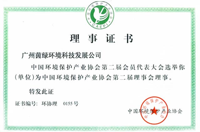 广东省环境保护产业协会第三届理事会理事 《理事证书》